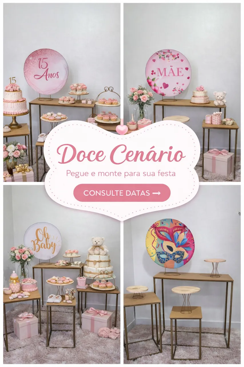 Crie um cenário doce e inesquecível para sua festa! Com o tema "Pegue e Monte", você terá tudo o que precisa para decorar seu evento. Consulte as datas disponíveis e transforme sua celebração em um momento mágico!
