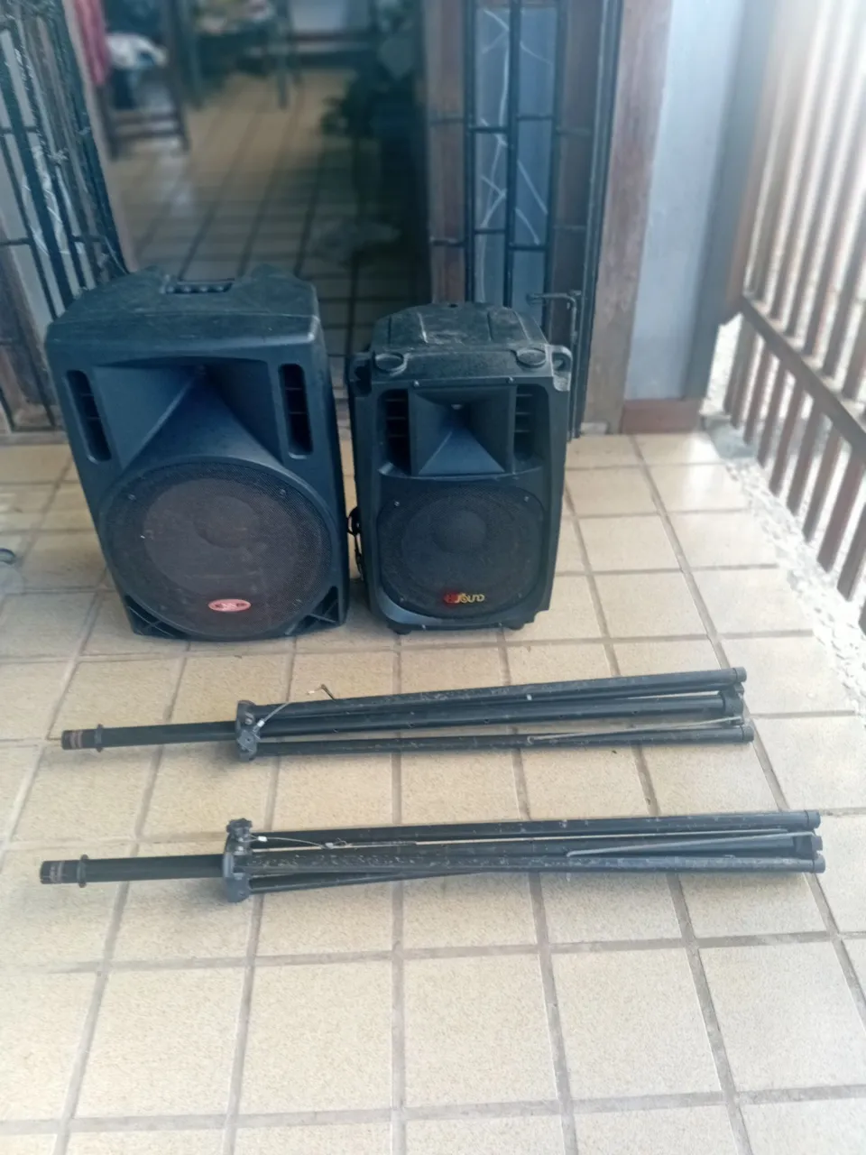 Duas caixas proficionad de 15 e 12 polegadas vendo u idade com tripés,aceito cartão.
