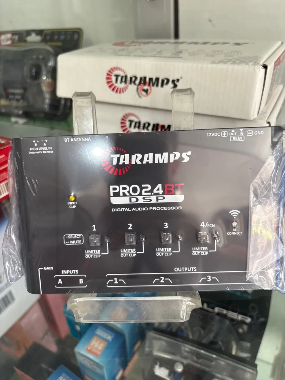 Processador de áudio digital Taramps Pro 2.4 BT DSP, com alta tecnologia e qualidade sonora. Bluetooth integrado e diversas funções para otimizar seu sistema de som automotivo.