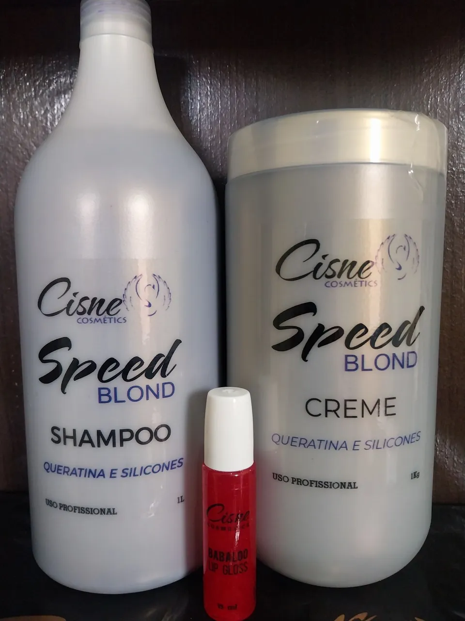 Kit completo Cisne Speed Blond para cabelos loiros. Shampoo, creme e gloss labial para um cuidado completo. Ideal para quem busca qualidade e resultado e vários outros kits a pronta entrega, todos a partir de 60 reais, para mais informações podem chamar 9927... ver número