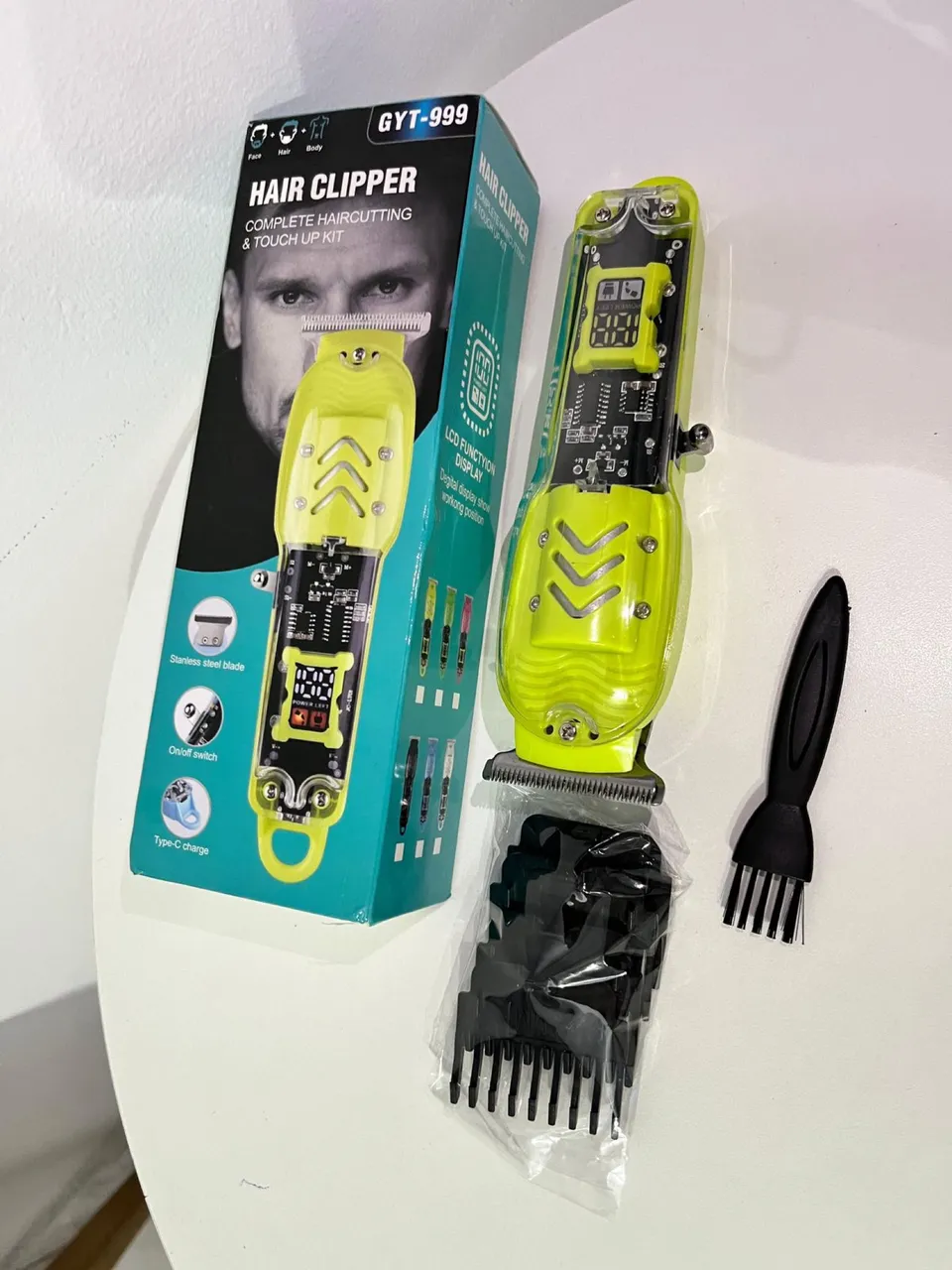 Corte de cabelo completo e preciso com a máquina GYT-999! Lâmina de aço inoxidável, design moderno e display LCD. Perfeita para um visual impecável.