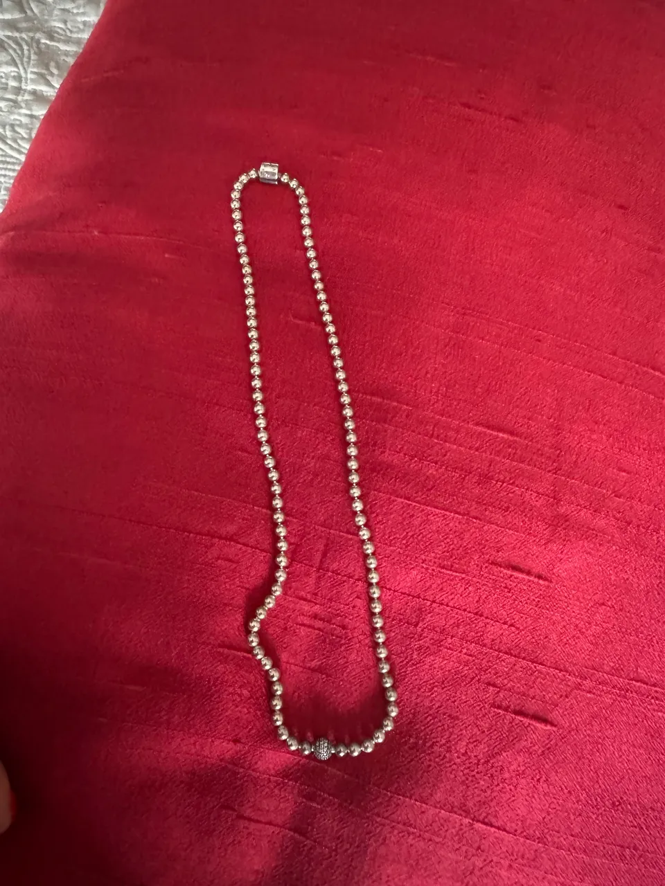 Lindo colar de bolinhas da Pandora, perfeito para adicionar um toque de elegância e sofisticação ao seu visual. Ideal para diversas ocasiões, este colar é um acessório indispensável!