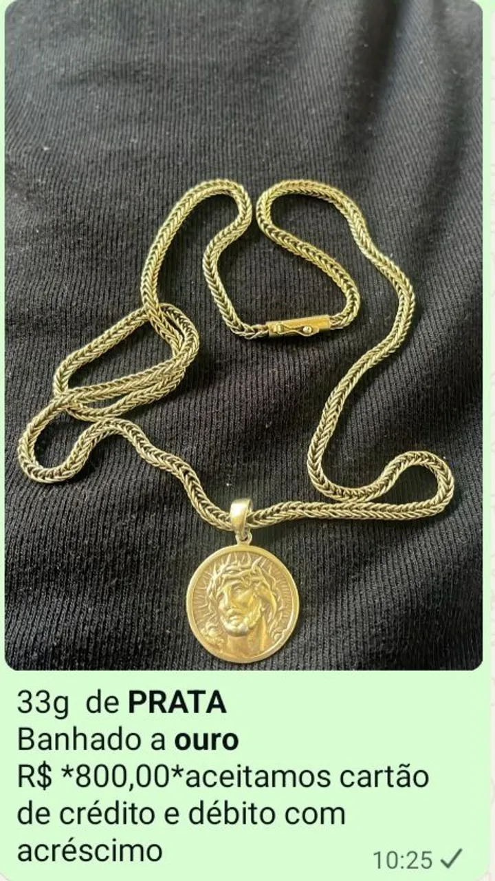 R$ 900,00* Lindo cordão banhado a ouro, com pingente que adiciona um toque de elegância e sofisticação ao seu visual. Perfeito para quem busca um acessório que une estilo e beleza.