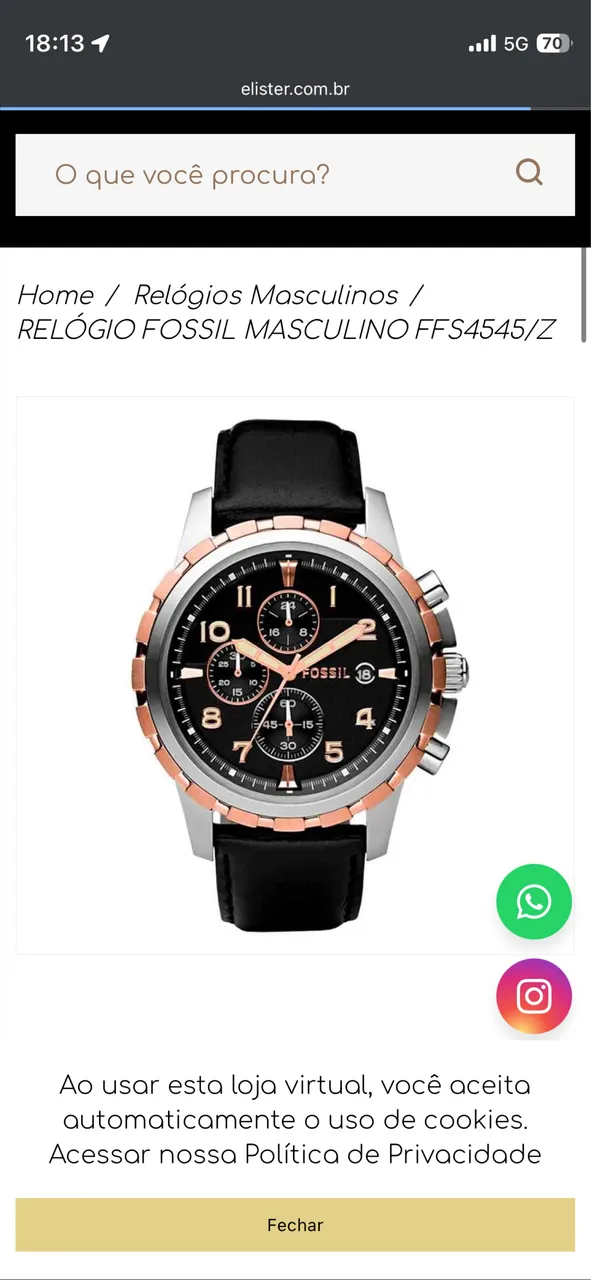 Relógio Fossil masculino, perfeito para você que busca estilo e sofisticação. Design moderno e elegante, ideal para diversas ocasiões. Uma peça que combina funcionalidade e beleza, realçando seu visual. Mais de mil reais na loja