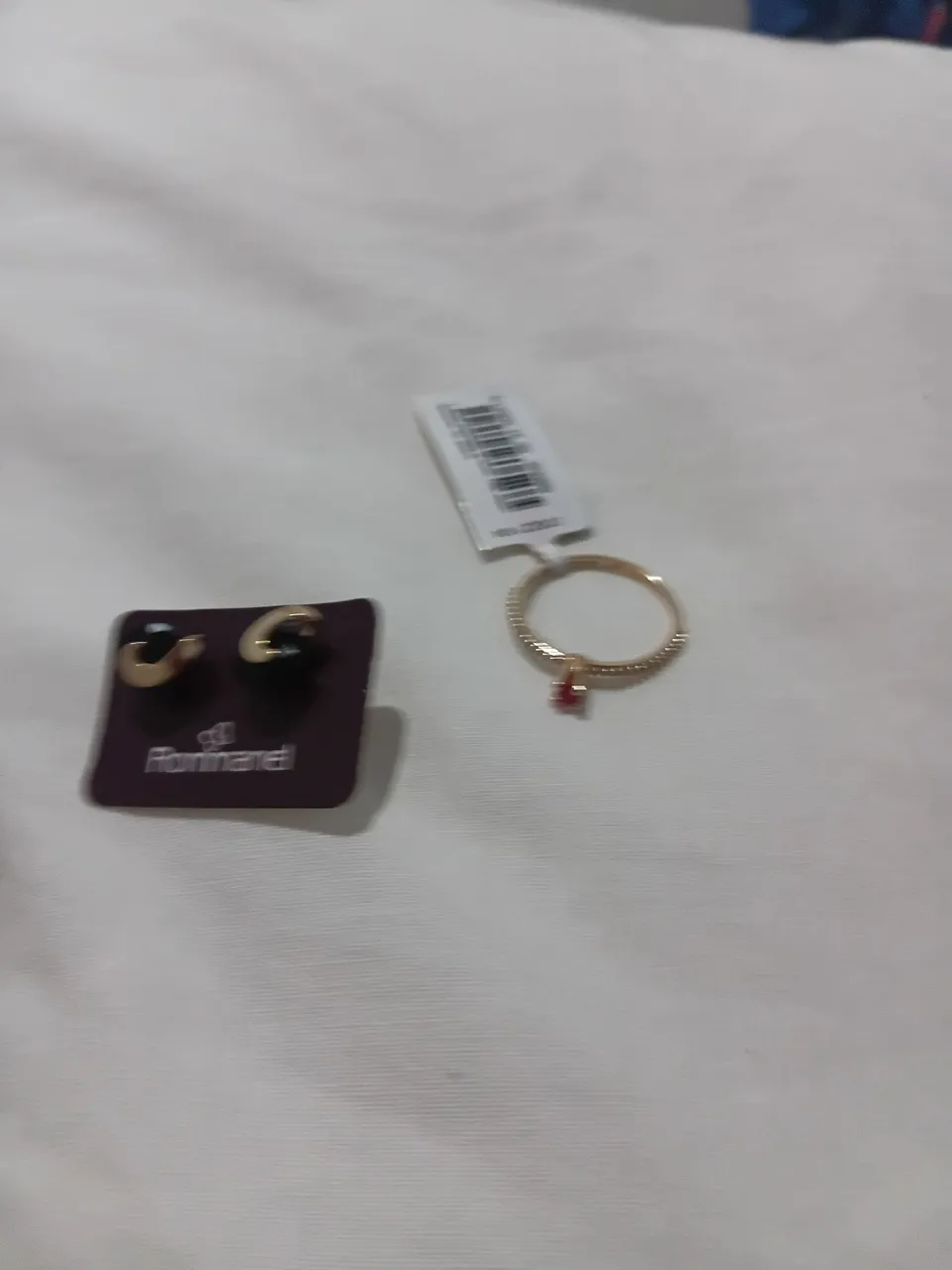 Conjunto de brincos e anel Romanel, perfeito para adicionar um toque de elegância e sofisticação ao seu visual. Design exclusivo e alta qualidade.
