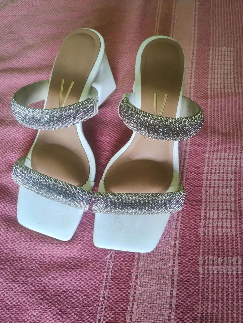 Sandália feminina branca com detalhes em strass, sem marcas de uso. Poucas vezes usado.