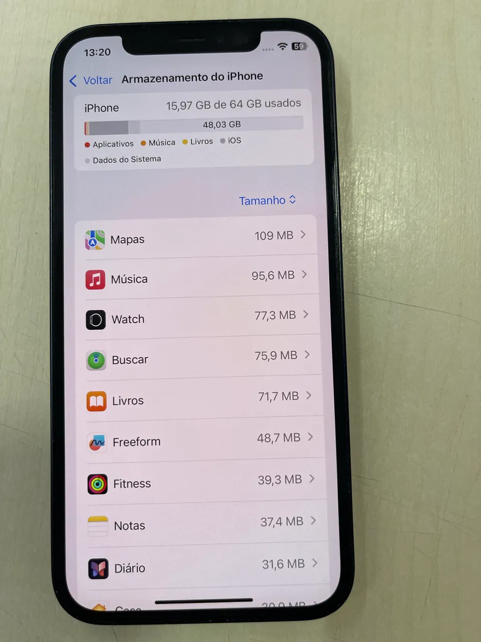 iPhone 12 64 gigas bateria 73% Biometria Face ID Valor 1.250,00 aceito cartão