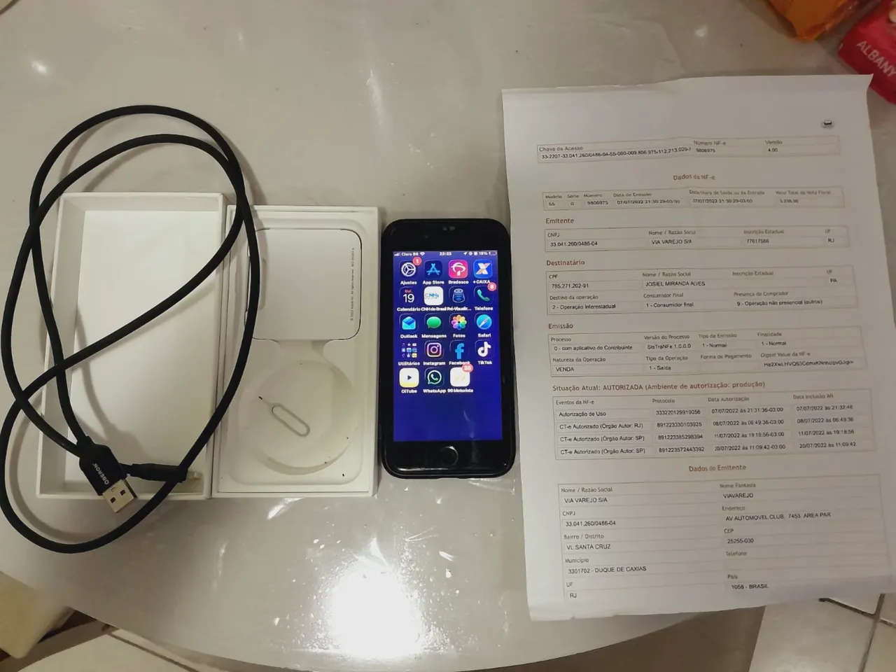 IPhone SE 3 (2022) tudo funcionando normalmente impressão Digital ?, câmeras ?, botão volume?, botão de ligar?,chip, Wi-Fi ?, só a bateria que precisa trocar está em 72%! Acompanha capa, cabo, caixa , nota fiscal chave para abrir a gaveta do chip, faço troca em iPhone 12 mini! Vamos negociar ?