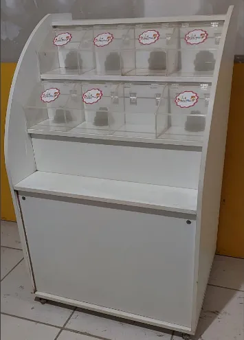 Expositor de doces em acrílico, ideal para lojas de conveniência, padarias e outros estabelecimentos comerciais. Possui 8 Box em Acrilico para acomodar diversos tipos de doces e guloseimas. Design moderno e elegante, que realça a beleza dos seus produtos. Dimensão AxLxP= 1.14x.72x.60. Parcelo no cartão em até 3x.