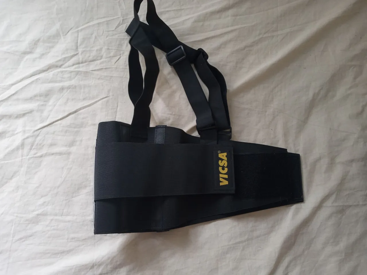 Cinta de proteção lombar Vicsa, projetada para oferecer suporte e segurança durante atividades que exigem esforço físico. Ideal para quem busca conforto e proteção no trabalho.