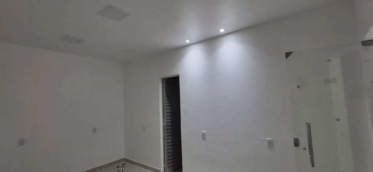Mede 16 m2, possui luminárias e banheiro interno. Toda reformada.