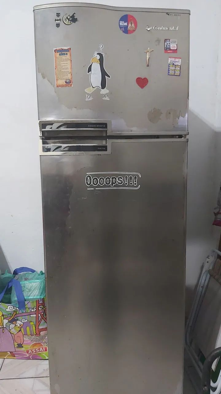 Geladeira Frost Free Continental com avaria na porta e gelando mais em cima na cor prata espaço interno para armazenar seus alimentos. Grande e com bastante espaço OBS: NAO FAÇO ENTREGA chamar no chat