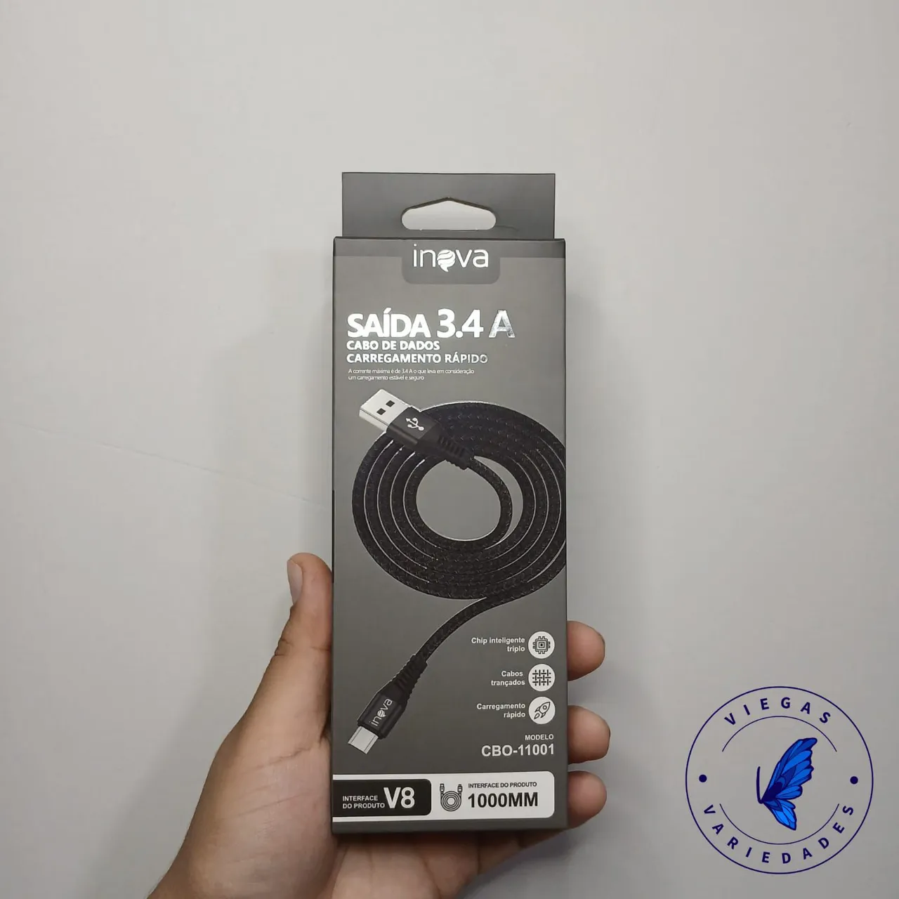 Cabo V8 de carregamento rápido e seguro. Design moderno com cabos trançados e chip inteligente, garantindo durabilidade e eficiência no carregamento do seu celular.
