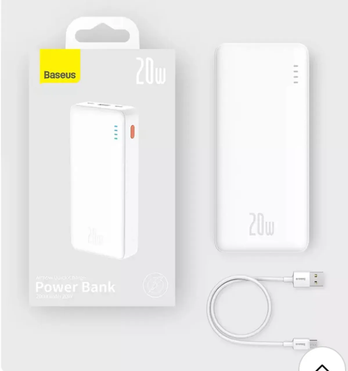 Carregador portátil Baseus 20W, design moderno e compacto. Ideal para carregar seus dispositivos com rapidez e segurança, perfeito para o dia a dia!
