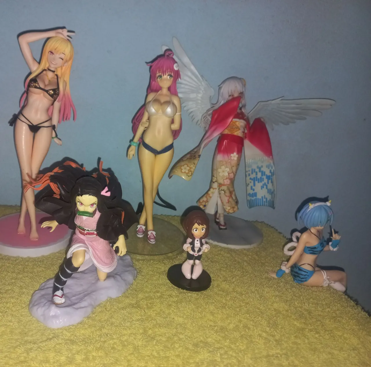 Coleção de action figures de animes de personagens diversos. Todas da imagem pelo preço de R$ 350 (aceito cartão). [Demon slayer, Boku no hero, My dress up darling...] Interesse por troca/negociação em: Super nintendo; WII; Celular; PS2; Bike... Valores avulsos: Kanade (Anjinha): R$ 160 Kurumi/Marin/Lala: R$ 70 (cada) Nezuko: R$ 80 Rem/Uraraka: R$ 35 (cada)