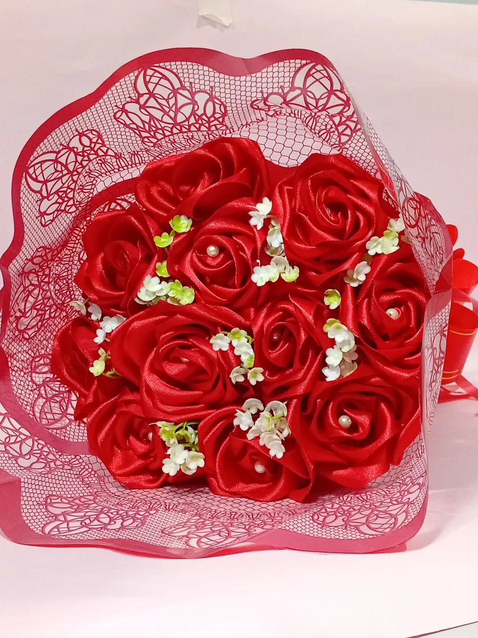Lindo buquê de rosas de cetim, ideal para presentear em ocasiões especiais.