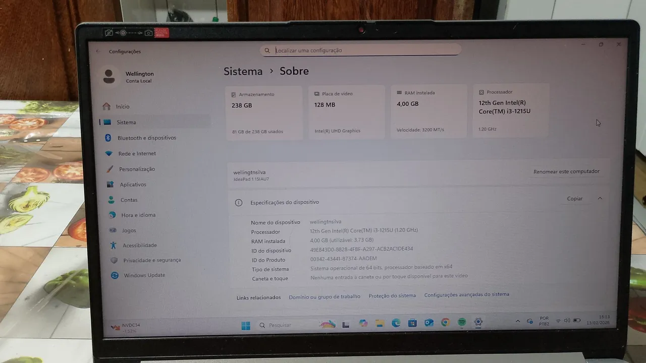 Modelo do ProcessadorIntel Core I3