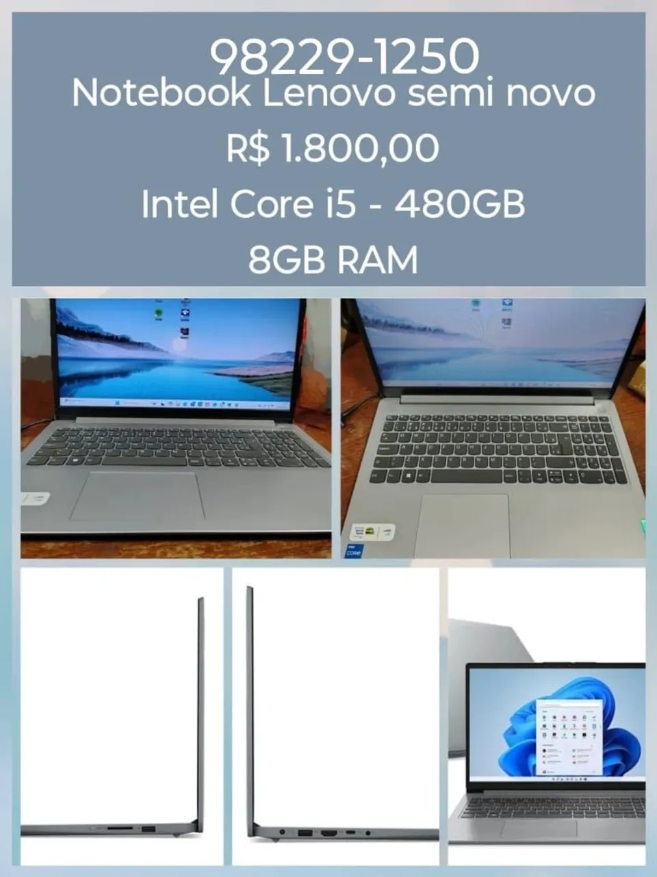 Notebook Lenovo em perfeitas condições de uso, pouco mais de 1 ano de uso. Excelente para trabalho e estudos.