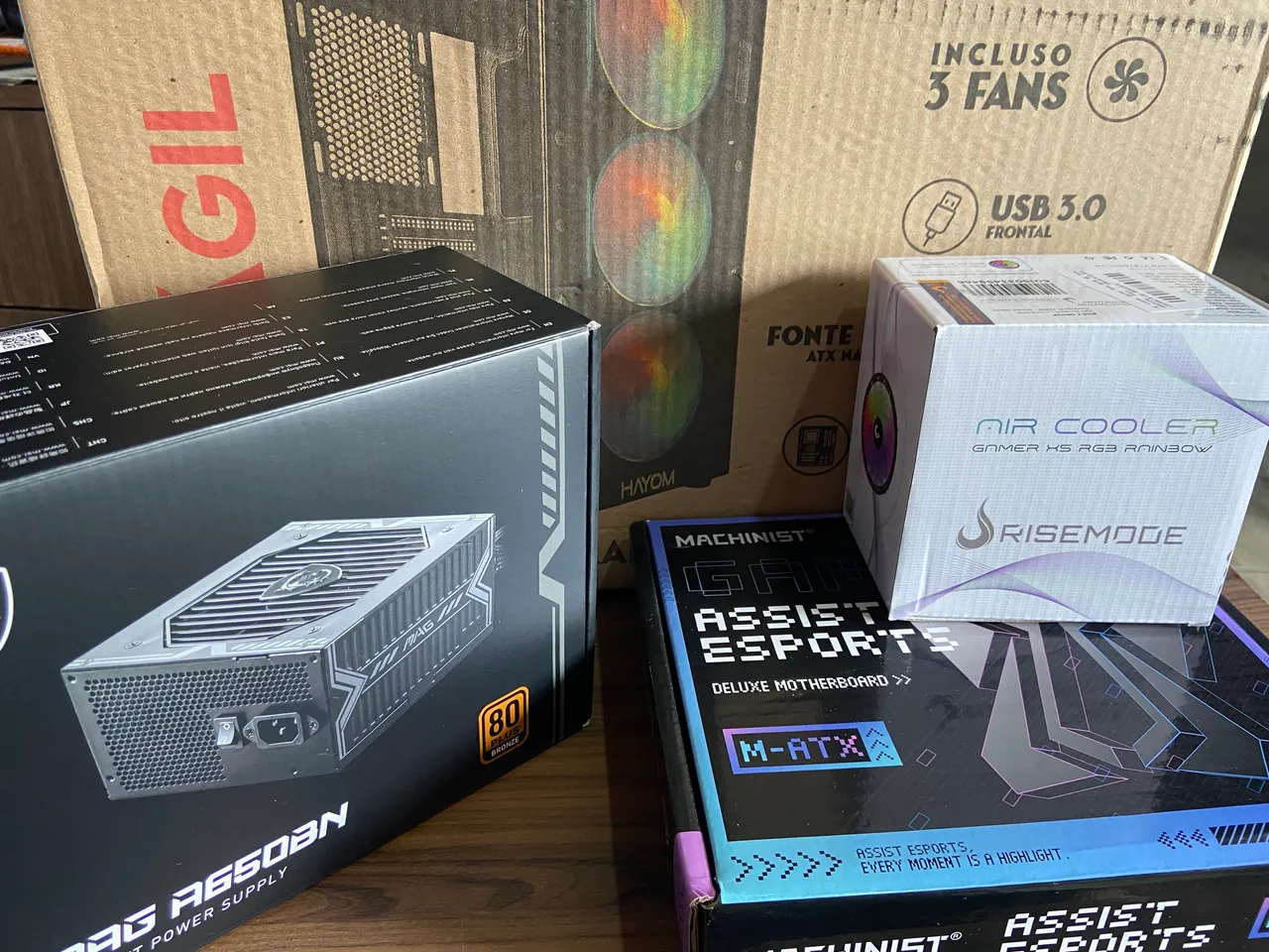Fontes de alimentação, placa-mãe, air cooler e gabinete. Tudo novo. Fonte R$300 Gabinete R$300 Air cooler R$50 Kit Xeon (processador + placa mãe + 2 memórias 8gb) R$800 Xeon E5-2650V3 2.30ghz Aceito pix, crédito e débito (com acréscimo). Faço entrega dependendo da distância.