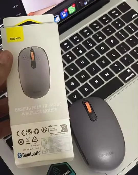 Mouse Baseus F01D Tri-Mode Wireless e Bluetooth. Design ergonômico e elegante para conforto e praticidade. Conectividade Bluetooth para fácil utilização em diversos dispositivos. Perfeito para trabalho e lazer!