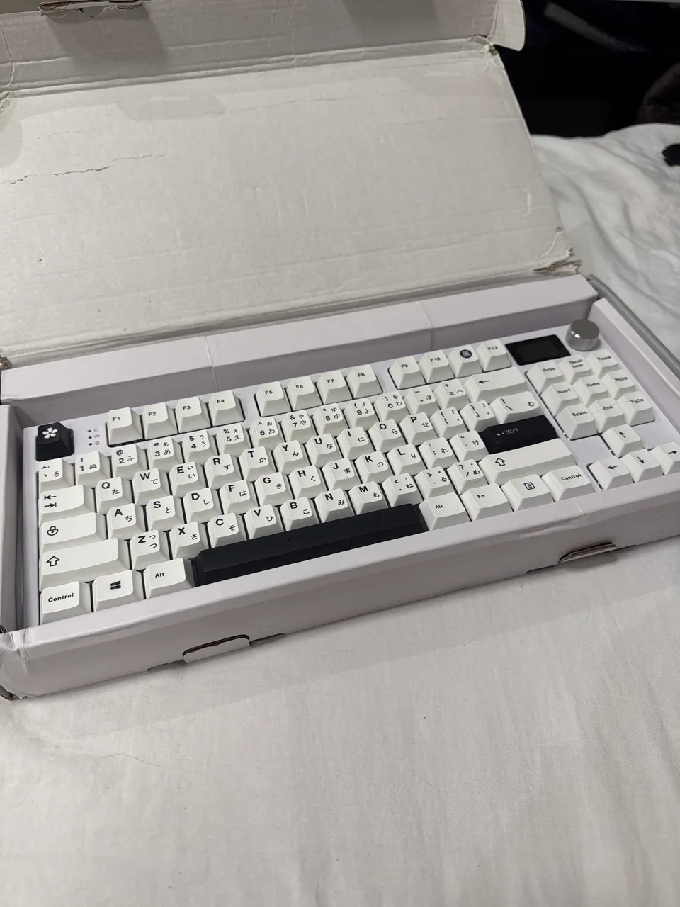 Pode vir com adicional de teclas diferentes (as já adicionadas ao teclado) + as do teclado mesmo, ou um adicional de teclas pudding (deixa o teclado lindo) acompanha todos os cabos, 2 switchs extras e removedor de keycap + o dongle