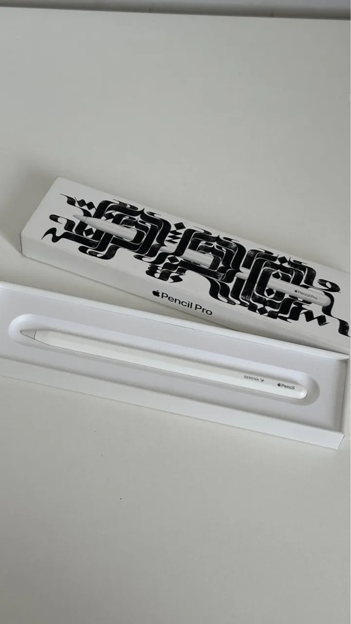 Apple Pencil 2 geração, nunca usada. Comprei errado, ela não é compatível com meu ipad, por isso ela vai na caixa da Pencil Pro, que foi a que comprei depois. Gravei a palavra serena nela, mas essa parte fica pra baixo quando está no ipad (foto 3).