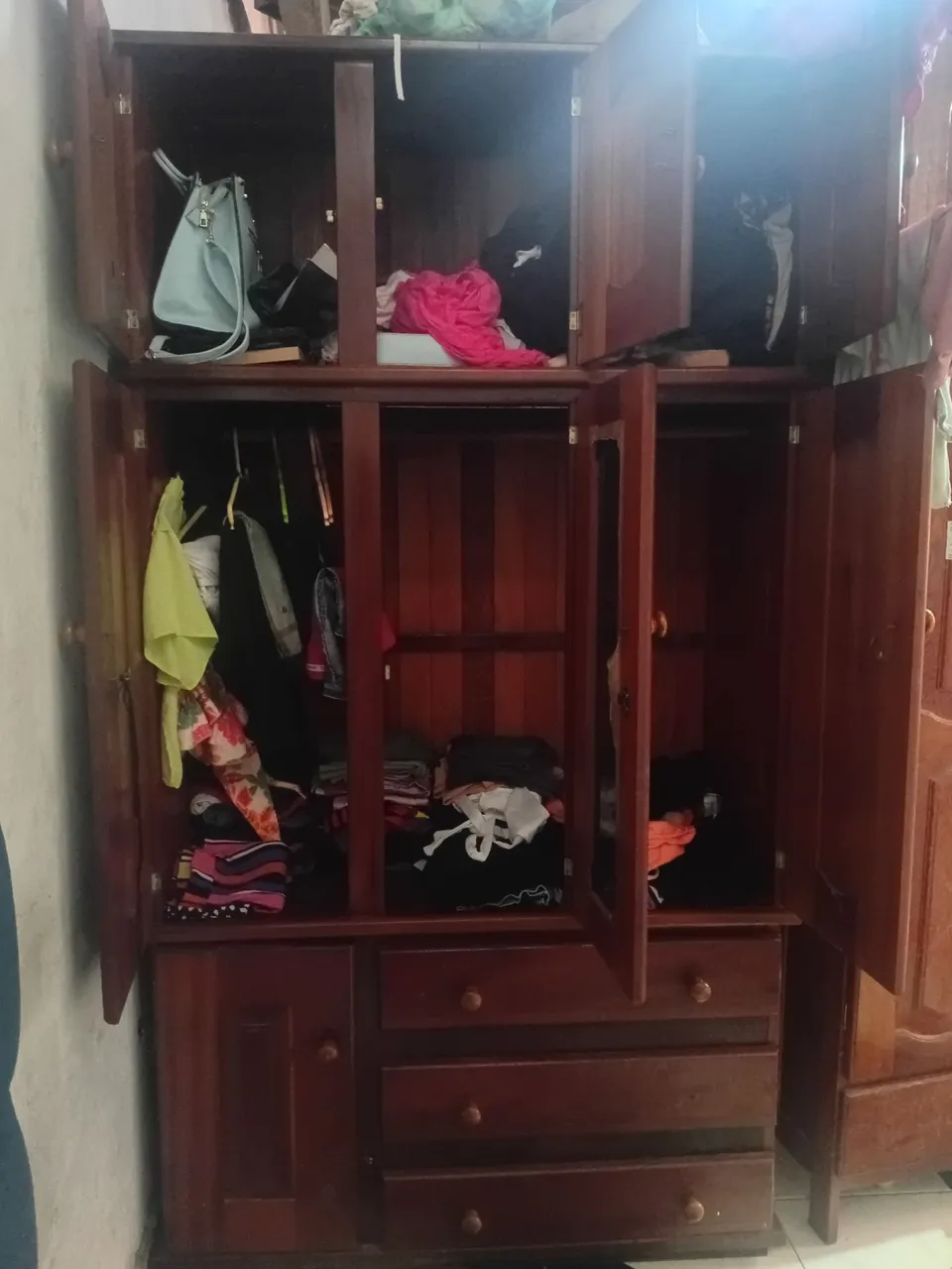 Guarda-roupa espaçoso e funcional, ideal para organizar suas roupas e acessórios. Design clássico em madeira, perfeito para qualquer ambiente. Aproveite!