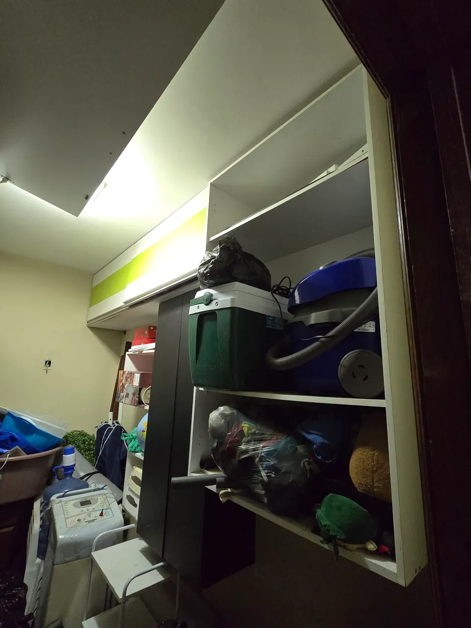 Organize sua casa com nossos móveis diversos! Oferecemos armários funcionais e com design moderno, ideais para otimizar o espaço e deixar sua casa ainda mais charmosa. 2 armários aéreos com tampas verdes, 2 armários aéreos com tampa branca, 1 armário branco de 2 portas, 1 armário preto de 2 portas, 1 armário sem portas com 3 prateleiras e nichos pequenos.