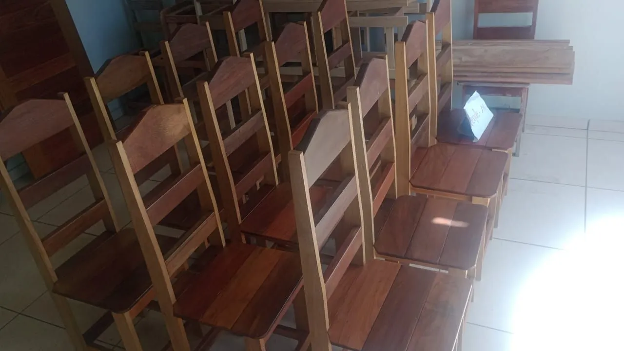 Cadeiras de madeira maciça, design clássico e resistente. Perfeitas para diversos ambientes. Conforto e durabilidade garantidos.
