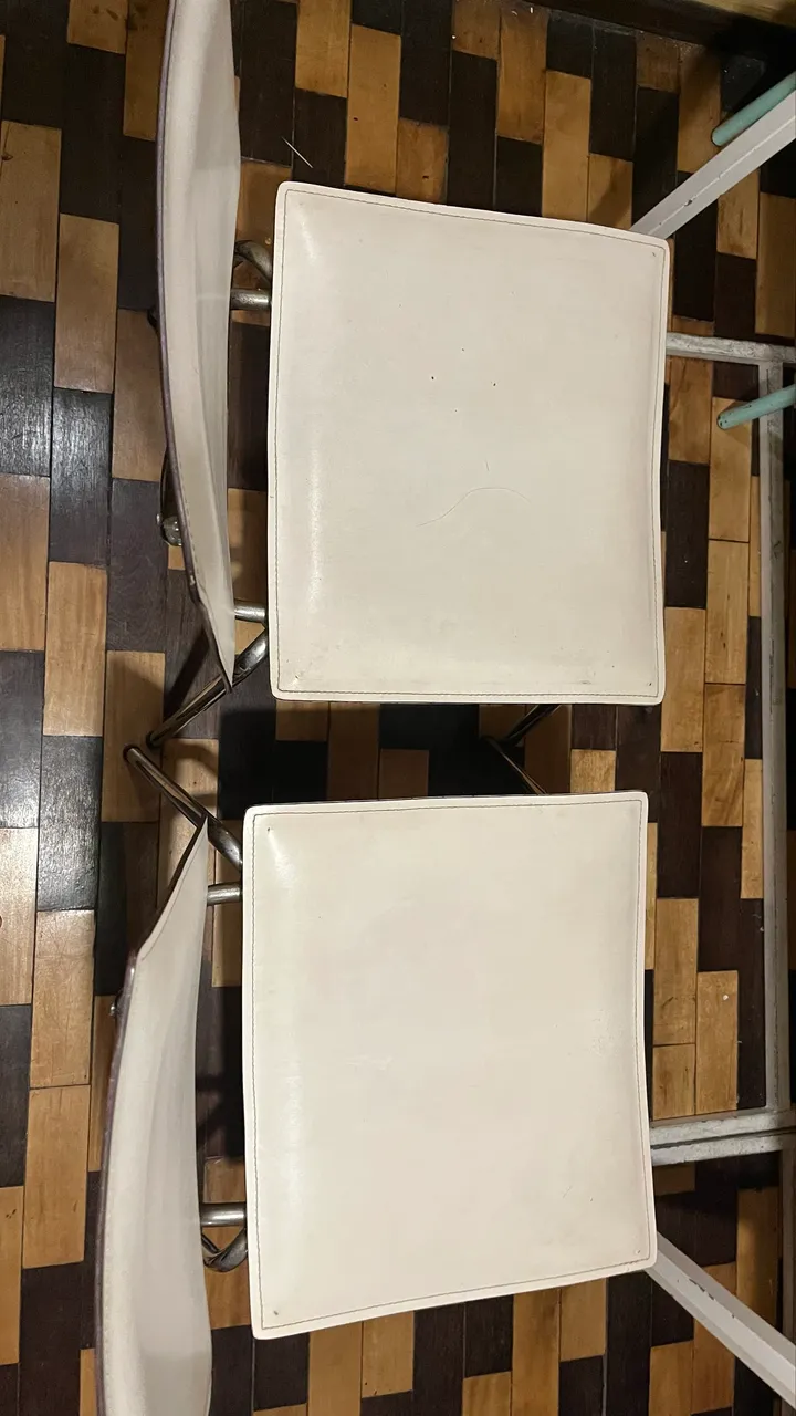 Lindas cadeiras em couro para sua casa ou escritório. Conforto e elegância em um só produto! Cadeiras em perfeito estado! Couro legítimo tingido de branco.