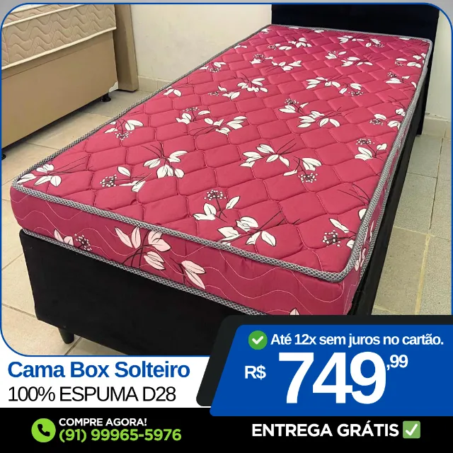 Cama Box solteiro Espuma d28 Anti ácaros Anti fungos Ate12x sem juros no cartão Pagamento no ato da entrega
