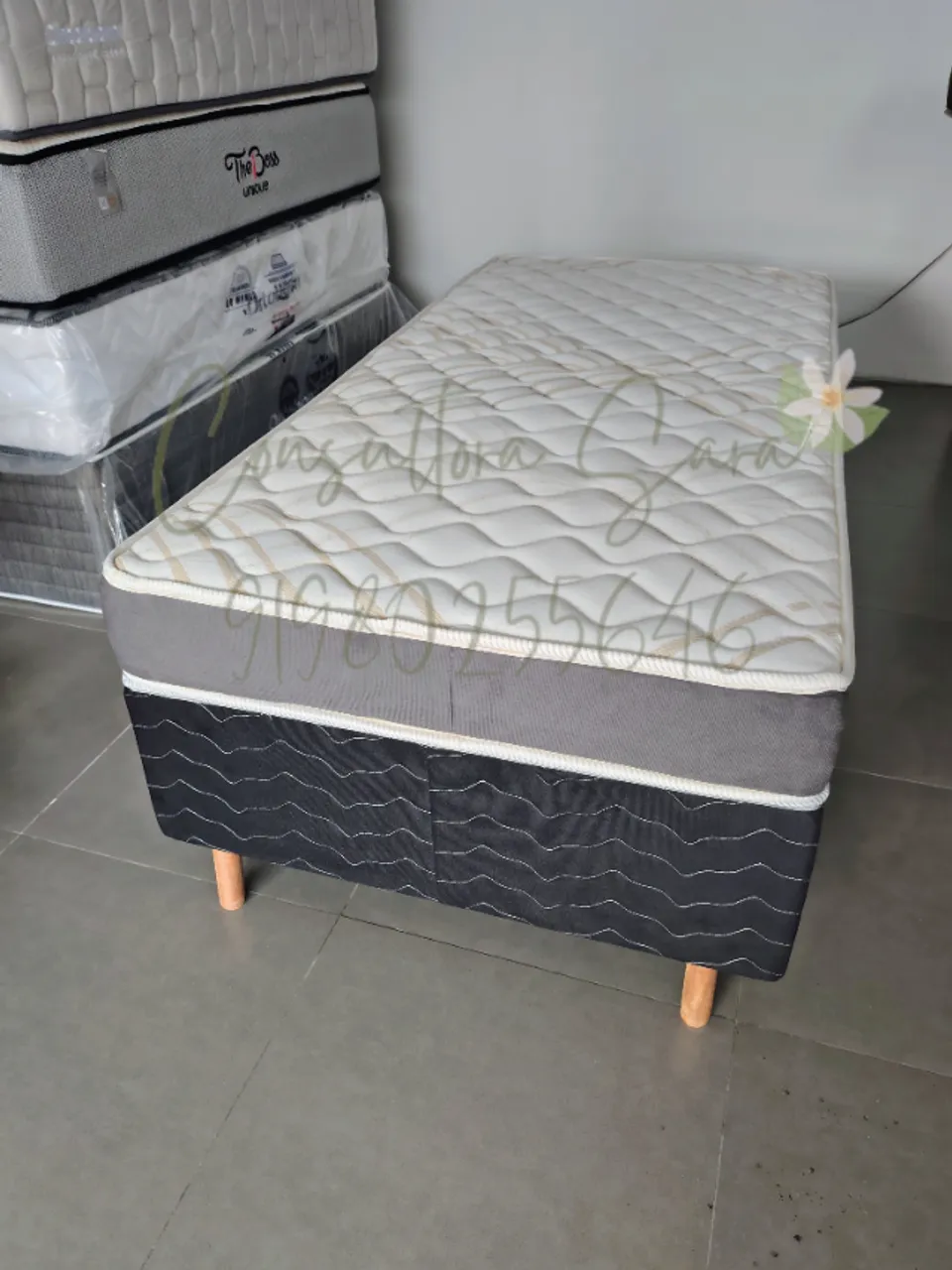 Cama solteiro D33 com base box, ideal para quem busca conforto e praticidade. Design moderno e elegante para o seu quarto. Durabilidade e qualidade garantidas!