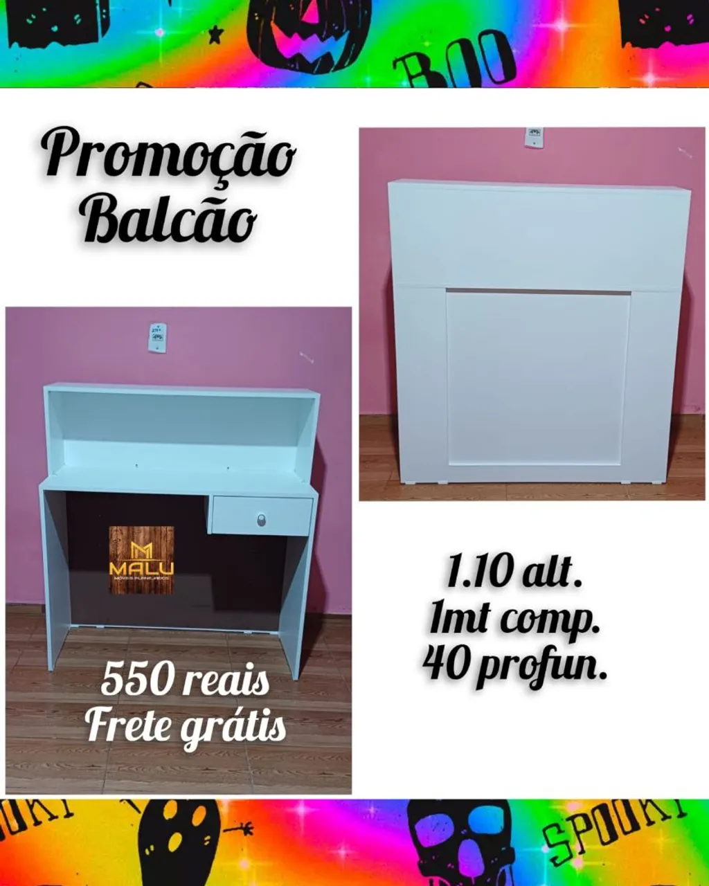 Lindo balcão branco com gaveta. Perfeito para trabalho. Dimensões: 1,10m alt. x 1m comp. x 40cm prof.