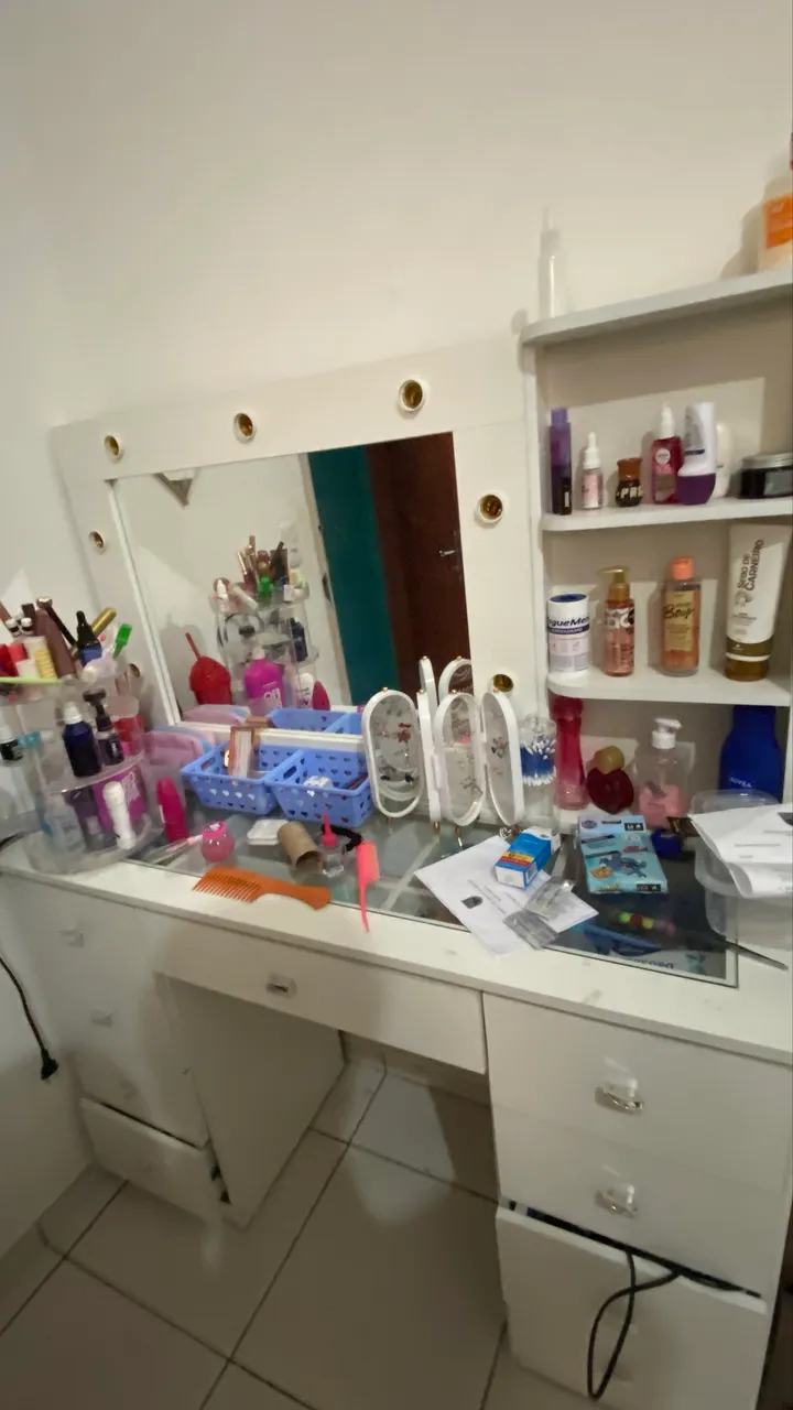 Penteadeira camarim perfeita para organizar seus acessórios e maquiagens. Design moderno e funcional, ideal para deixar seu cantinho ainda mais charmoso e prático!