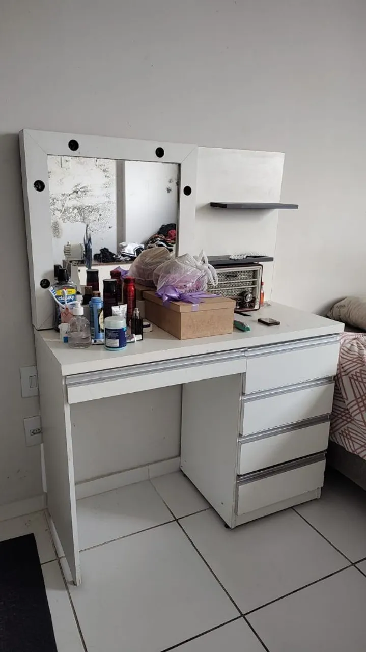 Penteadeira com bocais pegando OK, gaveta exclusiva de makes, 100% MDF, ótima pro seu quarto ou para seu Studio de maquiagem, ela já tá desmontada pronta para você retirar no endereço - não baixo mais o valor do que está no anúncio - interessados tratar no whatsapp comigo (91)... ver número Brenda