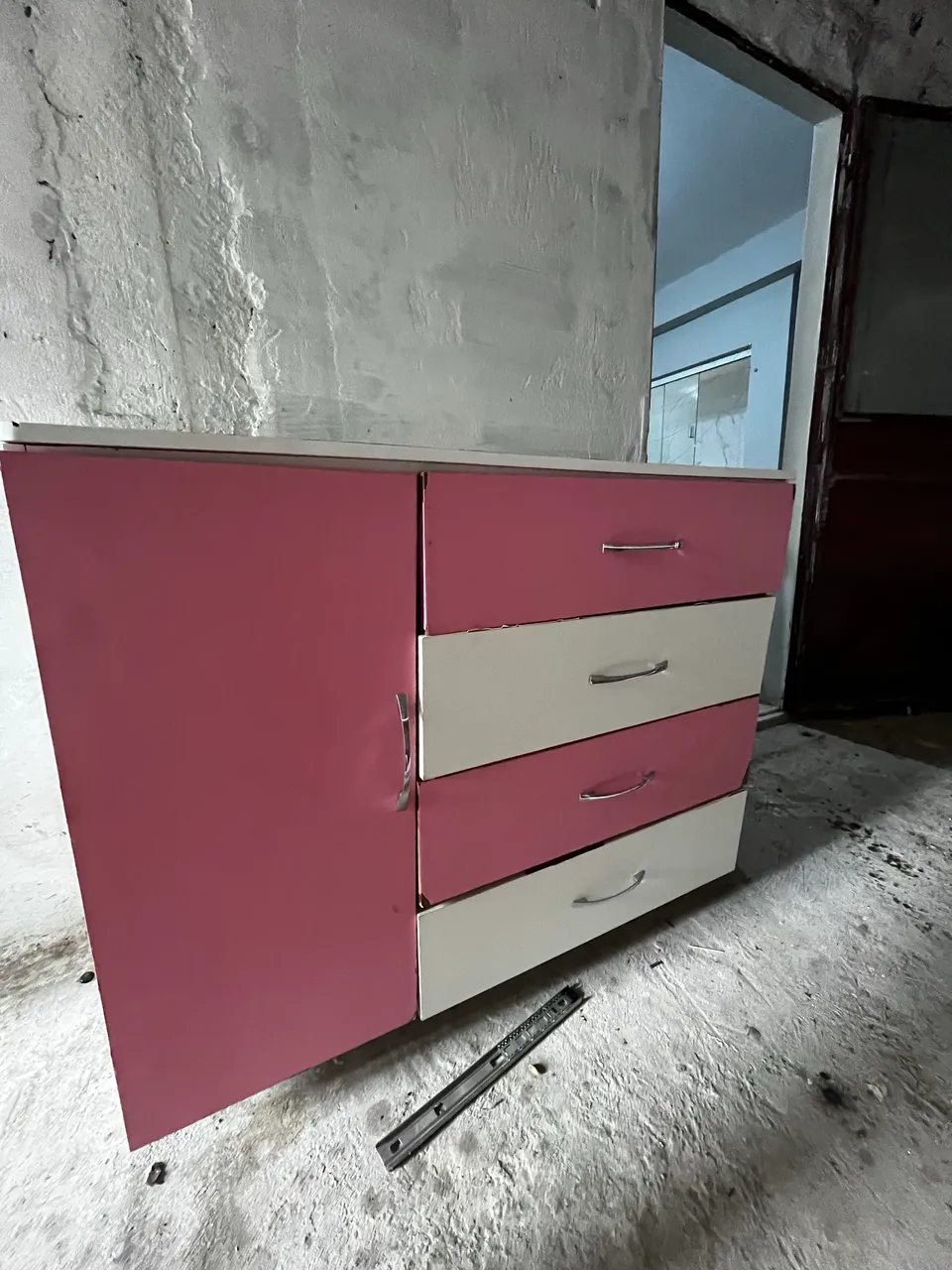 Linda penteadeira rosa e branca para deixar seu quarto ainda mais charmoso! Usada, possui avarias, as duas gavetas de baixo estão com defeito nos trilhos. Interessados: