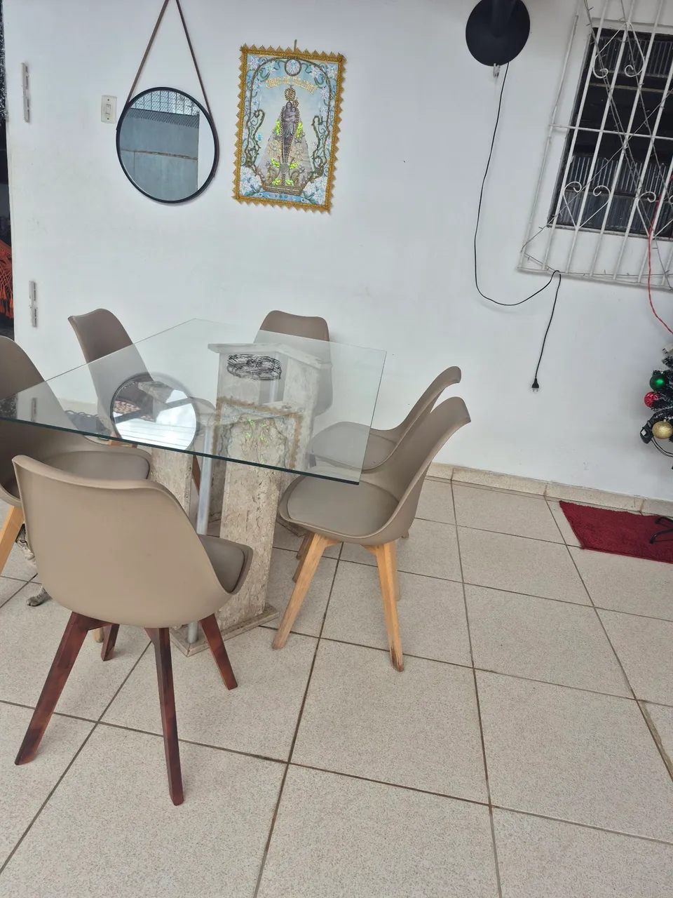 Linda mesa com 6 cadeiras, perfeita para sua sala de jantar! Design moderno e elegante, ideal para reunir a família e amigos. Garanta já a sua!