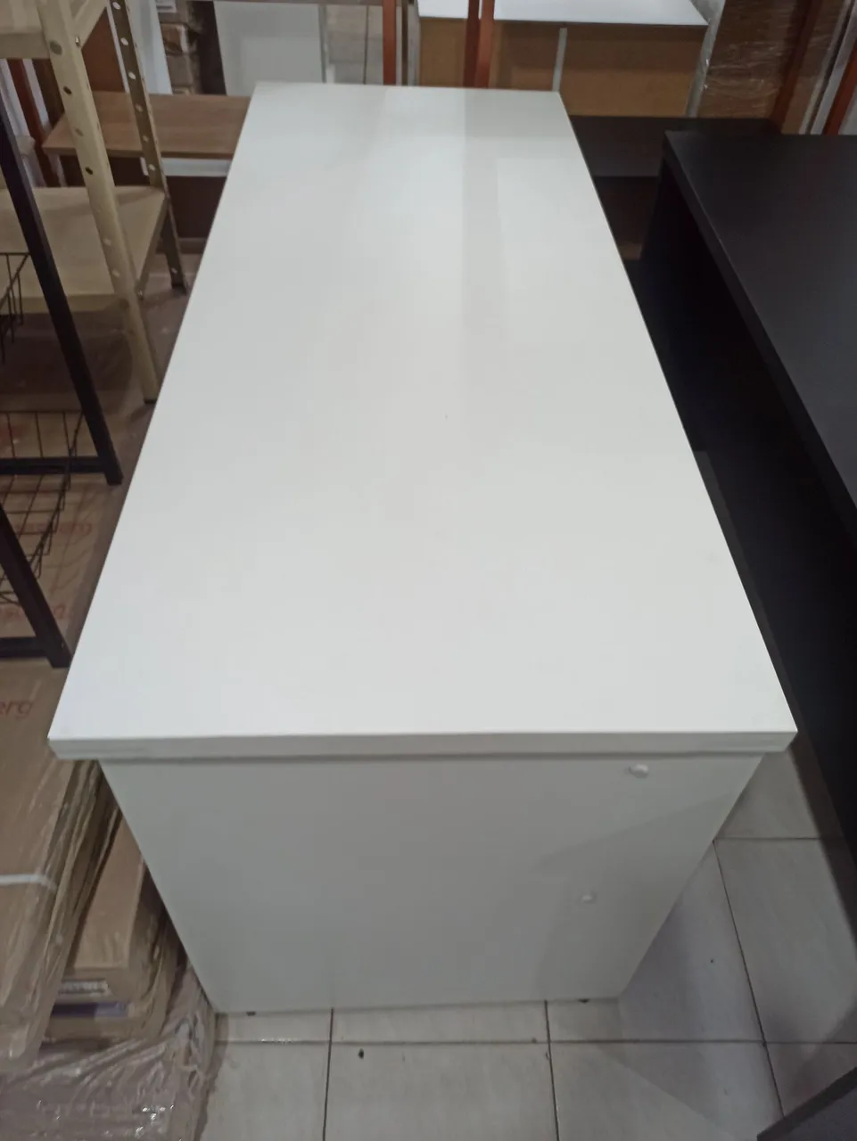 Mesa com duas gavetas 1,50 m na cor branca. 60 cm de profundidade. 75 cm de altura. Promoção por tempo limitado. R$ 499,00 Até 5x visa ou master sem juros Whats