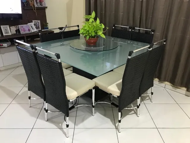 Linda mesa de jantar quadrada com tampo de vidro e 8 cadeiras com design moderno e elegante. Ideal para reunir a família e amigos em momentos especiais.Fibrasil móveis é a solução ideal para as suas necessidades. Oferecemos diversos móveis rústicos e de fibra sintética/ Vime com custo-benefício imbatível e que vão dar mais aconchego, modernidade e beleza para todos os seus ambientes. Venha conferir! Sala