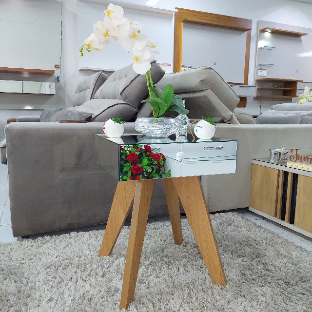 Mesa de centro com tampo espelhado. Perfeita para complementar a decoração da sua sala de estar, dando um toque de elegância e modernidade ao ambiente. Design moderno e funcional.