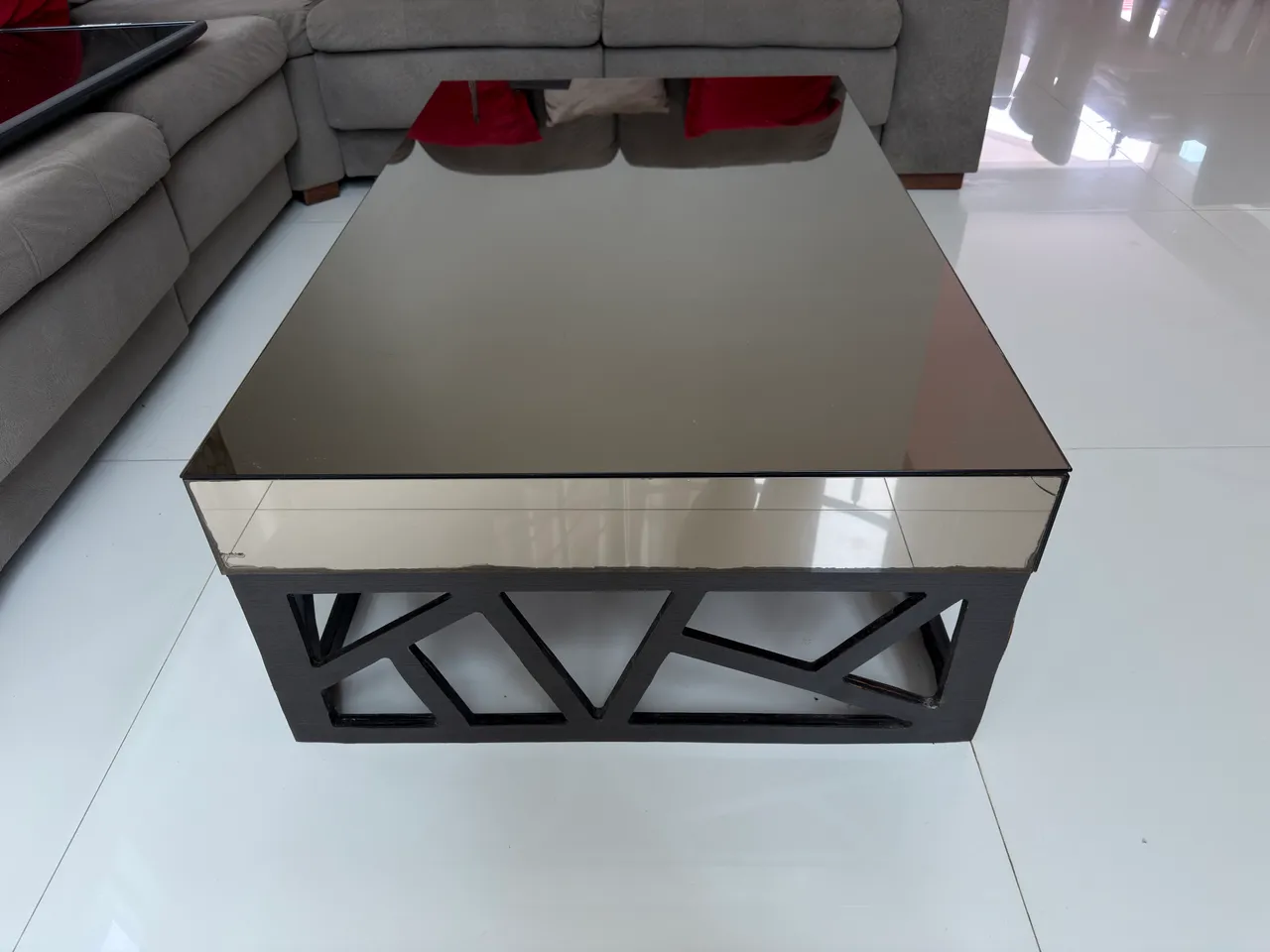 Apresentamos a mesa de centro perfeita para elevar o seu espaço! Com design sofisticado e detalhes únicos, esta mesa é o toque de elegância que sua sala merece. Seu tampo espelhado reflete a luz, criando um ambiente acolhedor e charmoso.
