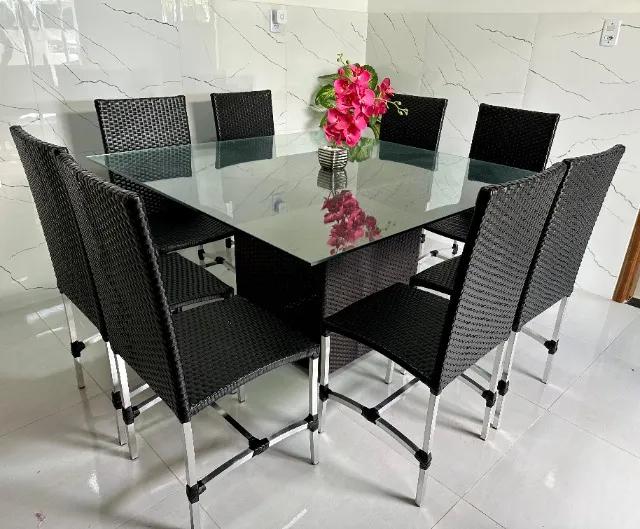 Conjunto de mesa de jantar com design moderno e sofisticado, ideal para reunir a família e amigos em momentos especiais. Perfeita para decorar sua casa com elegância e bom gosto.