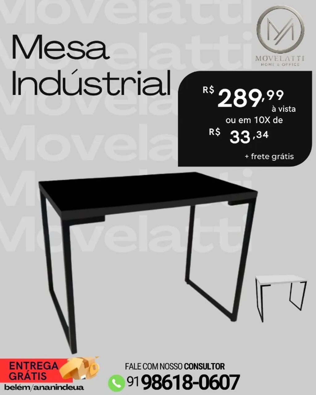 Mesa industrial com design moderno e elegante, perfeita para diversos ambientes. Combina funcionalidade e estilo, ideal para compor sua casa ou escritório.