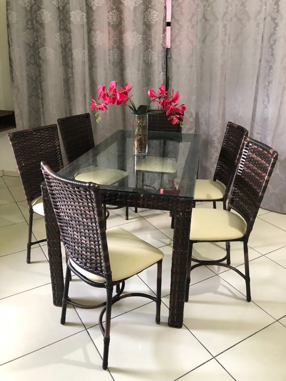 A Mesa Paris com 6 Cadeiras Baixa é perfeita para sua sala de jantar, combinando elegância e conforto. Seu design moderno e materiais de alta qualidade garantem durabilidade e beleza ao ambiente.