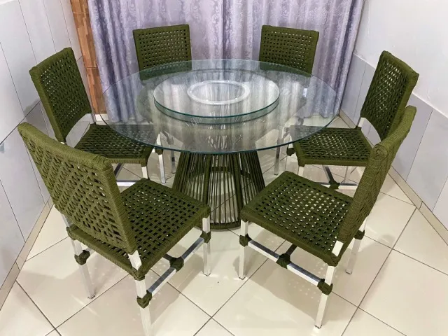 Conjunto de mesa Viena com 6 cadeiras, ideal para sua sala de jantar ou área gourmet. Design moderno e elegante, perfeito para reunir a família e amigos. Conforto e sofisticação em um só produto! Fibrasil móveis é a solução ideal para as suas necessidades. Oferecemos diversos móveis rústicos e de fibra sintética/ Vime com custo-benefício imbatível e que vão dar mais aconchego, modernidade e beleza para todos os seus ambientes. Venha conferir! Sala