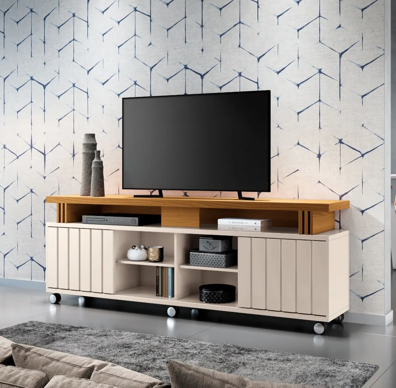 Apresentamos a bancada perfeita para sua TV! Com design moderno e funcional, esta bancada com rodinhas oferece praticidade e estilo para sua sala. Seu design elegante e versátil combina com qualquer decoração, enquanto as rodinhas facilitam a movimentação. Transforme sua sala com esta bancada incrível!