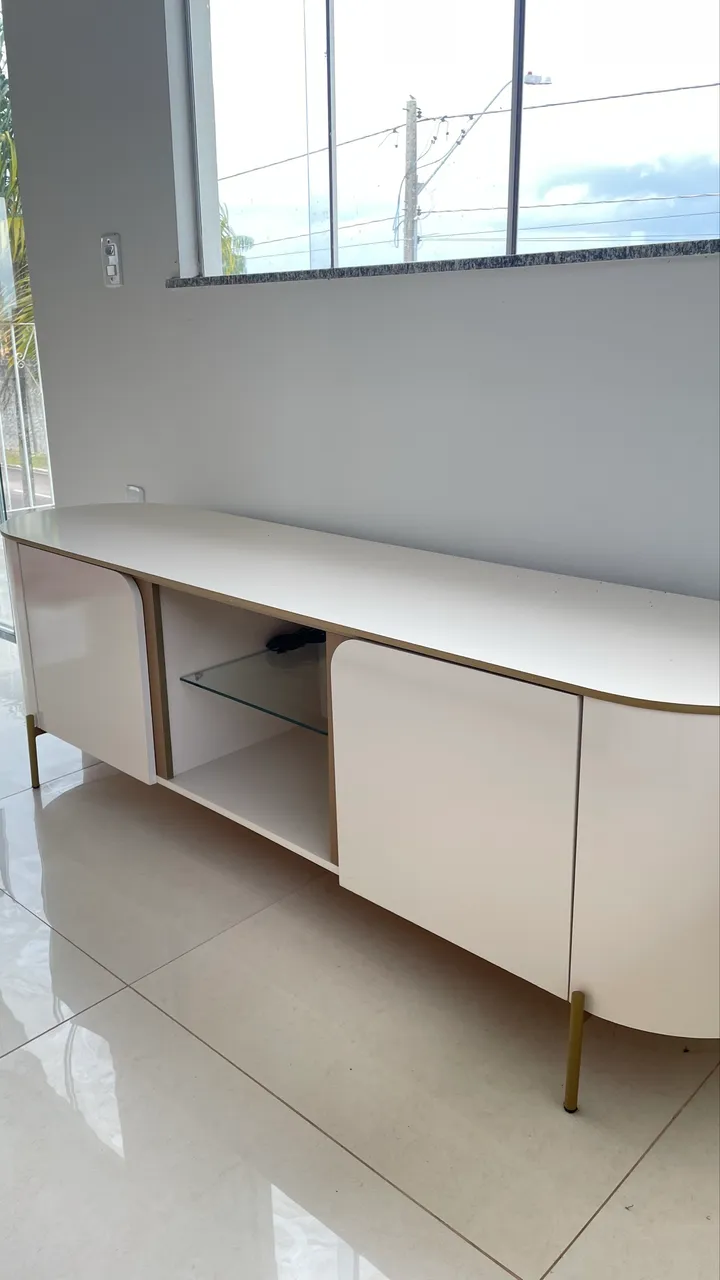 Apresentamos este elegante rack, perfeito para complementar sua sala de estar. Com design moderno e sofisticado, ele oferece espaço para TV e outros eletrônicos, além de adicionar um toque de charme ao ambiente.