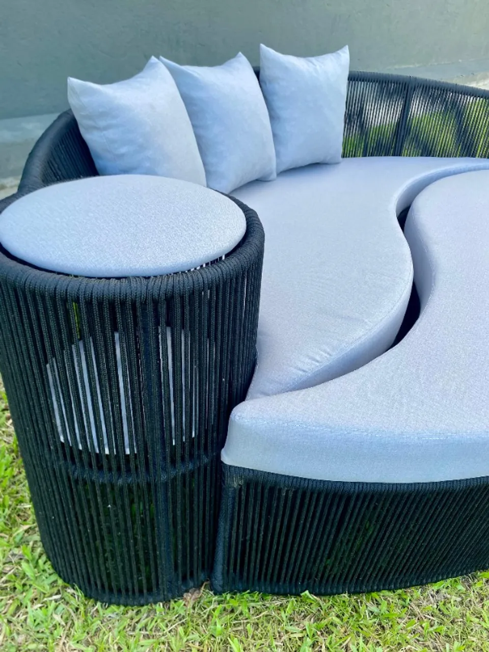 Sofá de jardim com design elegante e moderno, ideal para relaxar ao ar livre. Conforto e estilo para o seu espaço.Linda mesa de jantar com tampo de vidro e 6 cadeiras estofadas, perfeita para sua casa. Design moderno e elegante, ideal para refeições em família. Fibrasil móveis é a solução ideal para as suas necessidades. Oferecemos diversos móveis rústicos e de fibra sintética/ Vime com custo-benefício imbatível e que vão dar mais aconchego, modernidade e beleza para todos os seus ambientes. Venha conferir! Sala