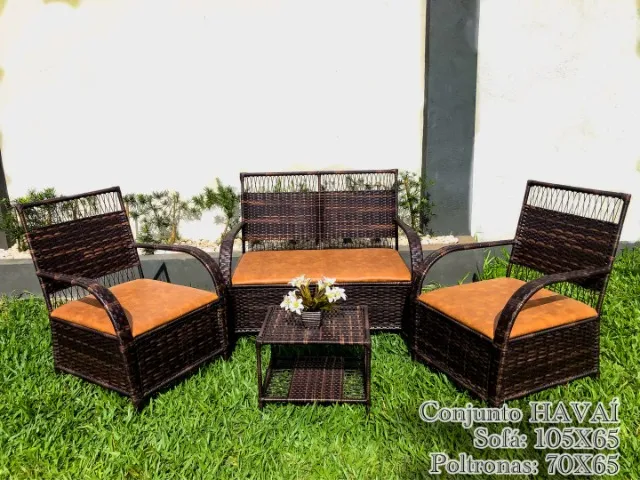 Conjunto HAVAÍ perfeito para relaxar e decorar sua área externa. Design elegante e confortável, ideal para momentos de lazer.Fibrasil móveis é a solução ideal para as suas necessidades. Oferecemos diversos móveis rústicos e de fibra sintética/ Vime com custo-benefício imbatível e que vão dar mais aconchego, modernidade e beleza para todos os seus ambientes. Venha conferir! Sala