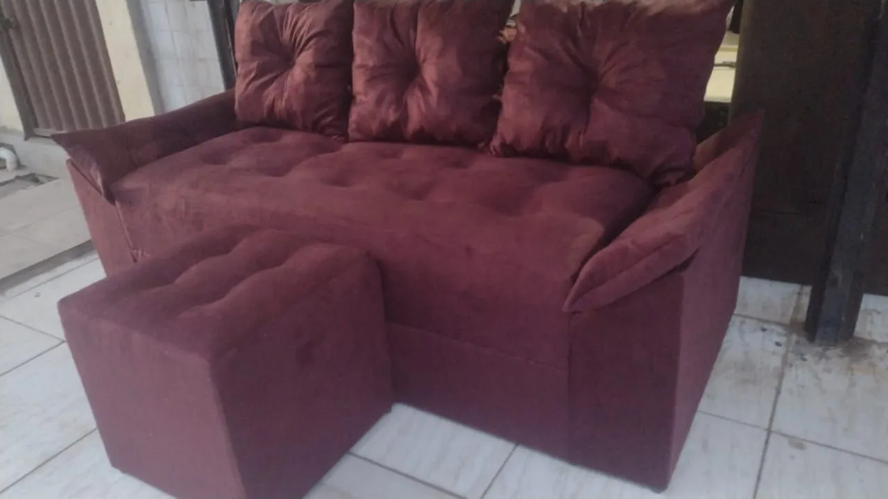 Sofá confortável na cor vinho, perfeito para a sua sala! Com 3 lugares, este sofá é ideal para acomodar meu zap